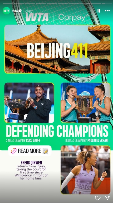 9月22日讯 期待已久的2025年中国网球公开赛将于9月24日(周三)正式拉开帷幕。WTA官方发布的赛事前瞻中,令人振奋的是,中国的网球新星郑钦文确认将参与此次盛会。