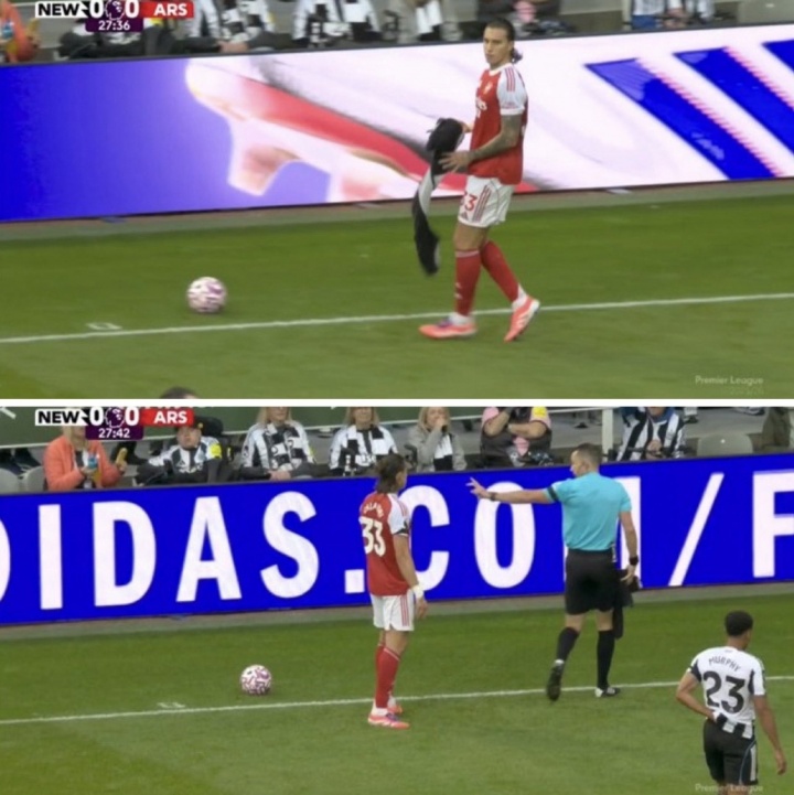 在这场英超的戏剧中,阿森纳在客场以2-1战胜纽卡,然而,比赛中却因卡拉菲奥里想用毛巾擦球而被主裁判阻止引发千头万绪的讨论。究竟为什么一个简单的毛巾竟然能搅动波澜呢?BBC给出的解释可谓是恍若一刀切。