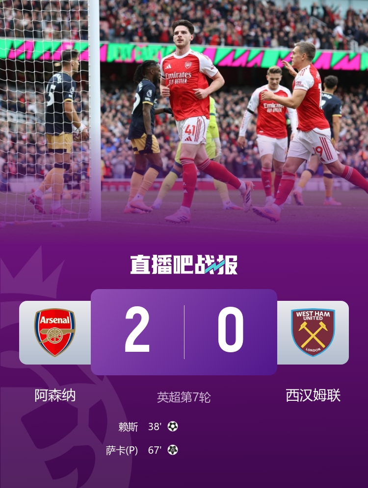 阿森纳以2-0战胜西汉姆 赖斯进球回归旧主 萨卡受伤点球由厄德高主罚并受伤_英超直播免费观看