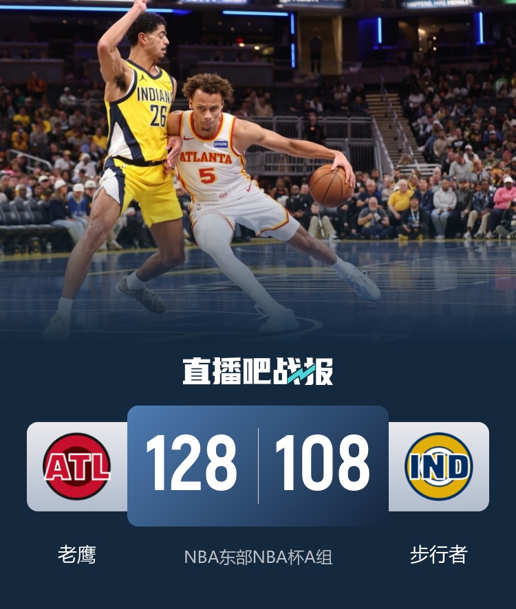 NBA杯老鹰战胜步行者杰伦约翰逊砍下22分13板8助攻西卡贡献18分5板5助攻_nba直播免费高清在线