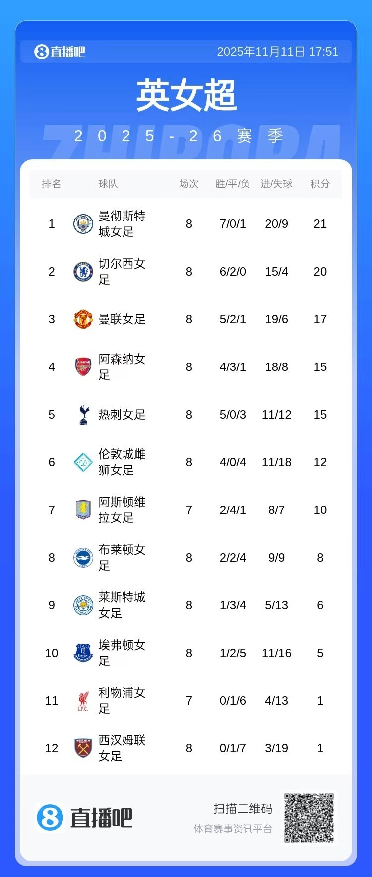 女足英超积分榜的风云变幻 曼城独占鳌头 阿森纳紧追其后 利物浦陷入困境_英超直播免费观看