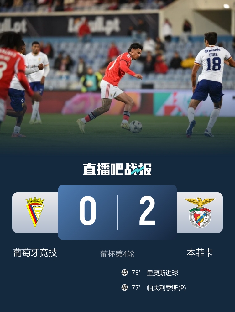 本菲卡以2-0战胜葡萄牙竞技晋级葡萄牙杯16强 里奥斯进球帕夫利季斯罚入点球_足球直播在线直播观看免费