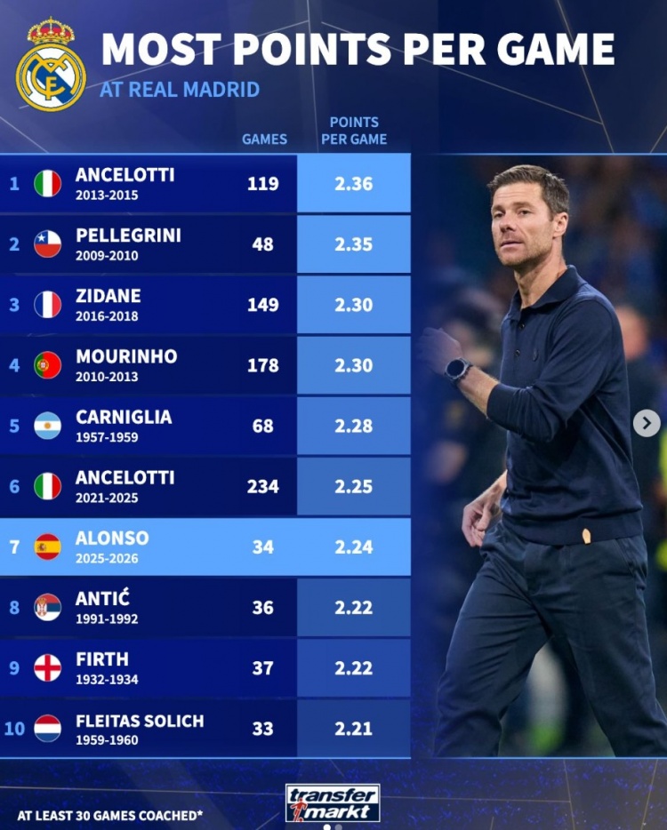 皇马队史场均拿分榜:安帅的辉煌成就和阿隆索的神秘排名,齐祖穆帅也只能跟着凑热闹_西甲直播
