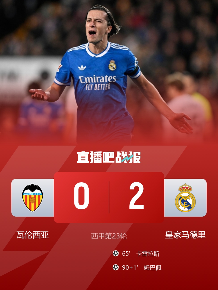 皇马追风而上奋勇连胜 瓦伦西亚无奈成阶梯 卡雷拉斯带球狂奔姆巴佩终于开锣_西甲直播