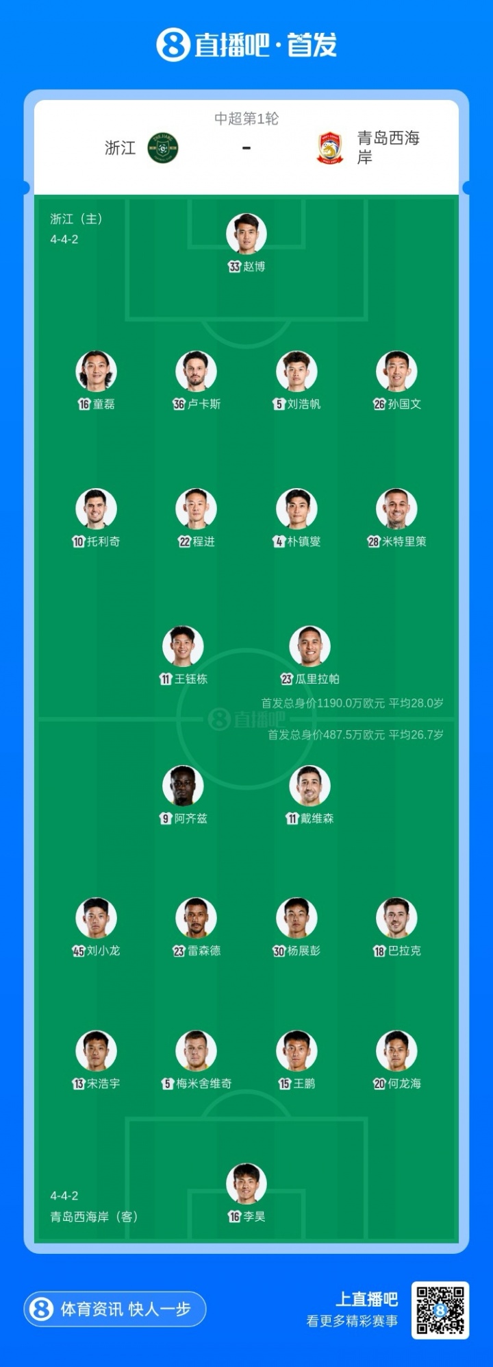 今天下午3点30分,2026赛季的中超首轮赛事将拉开帷幕,浙江队将在主场与青岛西海岸展开碰撞。预热之前,双方的首发阵容已经亮相,我们就来细细品味这场看似平淡但实则暗流涌动的较量。