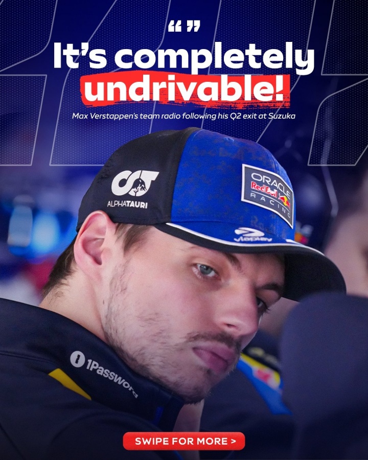 维斯塔潘:排位赛时我感觉这辆车完全无法驾驶,之前是转向不足,今天却又出现了过度转向的问题_F1直播