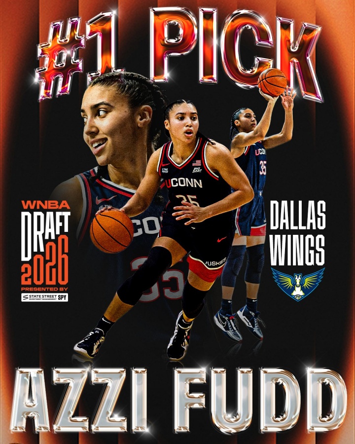 2026年WNBA选秀今日拉开帷幕,达拉斯飞翼队在首轮以状元签选中了来自康涅狄格大学的后卫阿齐·福德。阿齐于2002年11月出生,身高1米80,作为后卫在场上展现出不俗的实力。她的篮球基因不容小觑——父母都是篮球运动员,母亲在2001年代表WNBA萨克拉门托君主队征战。